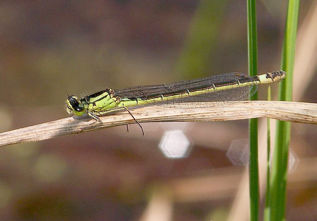 Ta samica zjada właśnie teneralnego samca łątki halabardówki Coenagrion hastulatum. Na jej drugim segmencie odwłoka możemy dokładnie obejrzeć kształt czarnej plamki. Kształt czarnych plamek na segmencie S8 też jest charakterystyczny.