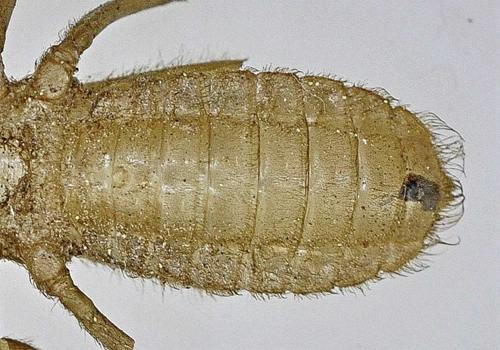 Tu widzimy stronę grzbietową odwłoka. Rosnące na stronie wentralnej 9 segmentu szczecinki na krawędziach są dłuższe od samego segmentu i wystają spoza niego, porównanie w odwłokiem S.arctica można zobaczyć klikając tu. Cerci są nieco dłuższe niż u S. arctica. Piramida analna zazwyczaj nieco dłuższa od bocznej krawędzi 9 segmentu, a przynajmniej tej samej długości. Wyraźnie widać, że larwa S. arctica jest znacznie bardziej pokryta szczecinkami,