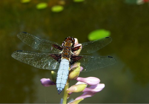 Samice gatunków, które zrzucają jaja na wodę w locie, jak ta ważka płaskobrzucha Libellula depressa, robią to w ciągłym ruchu i „mogą sobie pozwolić” na jaskrawsze ubarwienie. Nie jest ono jednak nigdy tak efektowne, jak u samców, które muszą zareklamować swą atrakcyjność i zdolność do przekazania najlepszych cech potomstwu.